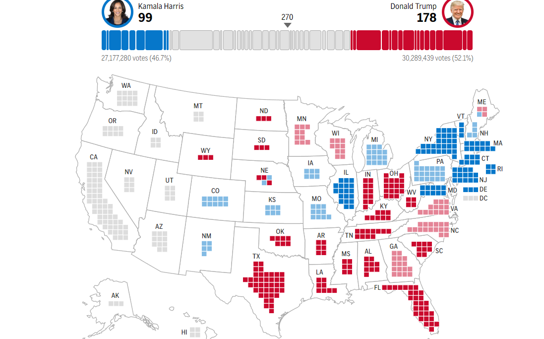 Lajme Rezultatet e deritashme â Trump arrin 95 vota tĂ« Kolegjit Zgjedhor, Kamala 35 đ 06.11.2024 đ 0